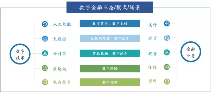 数字金融是金融与科技结合的高级发展阶段,也是金融创新和金融科技的发展方向。由上图可以看到数字技术,其实跟金融业务有很多融合的点。怎样利用这些点找到技术的支撑,是进行线上化、数据化跟智能化的出发点。首先找到有关提升效率、降低成本、增加收入的点,依据这三点可以逐步看到从线上化、数据化到智能化的过程,以及逐步建设商业能力的升级。其次通过金融数据+新兴技术“双轮驱动”数字金融发展,可以造就新场景新模式。最后根据智能金融、场景金融等金融业态数字化升级,使得技术催生新业态,数字新基建加速金融深度数字化。