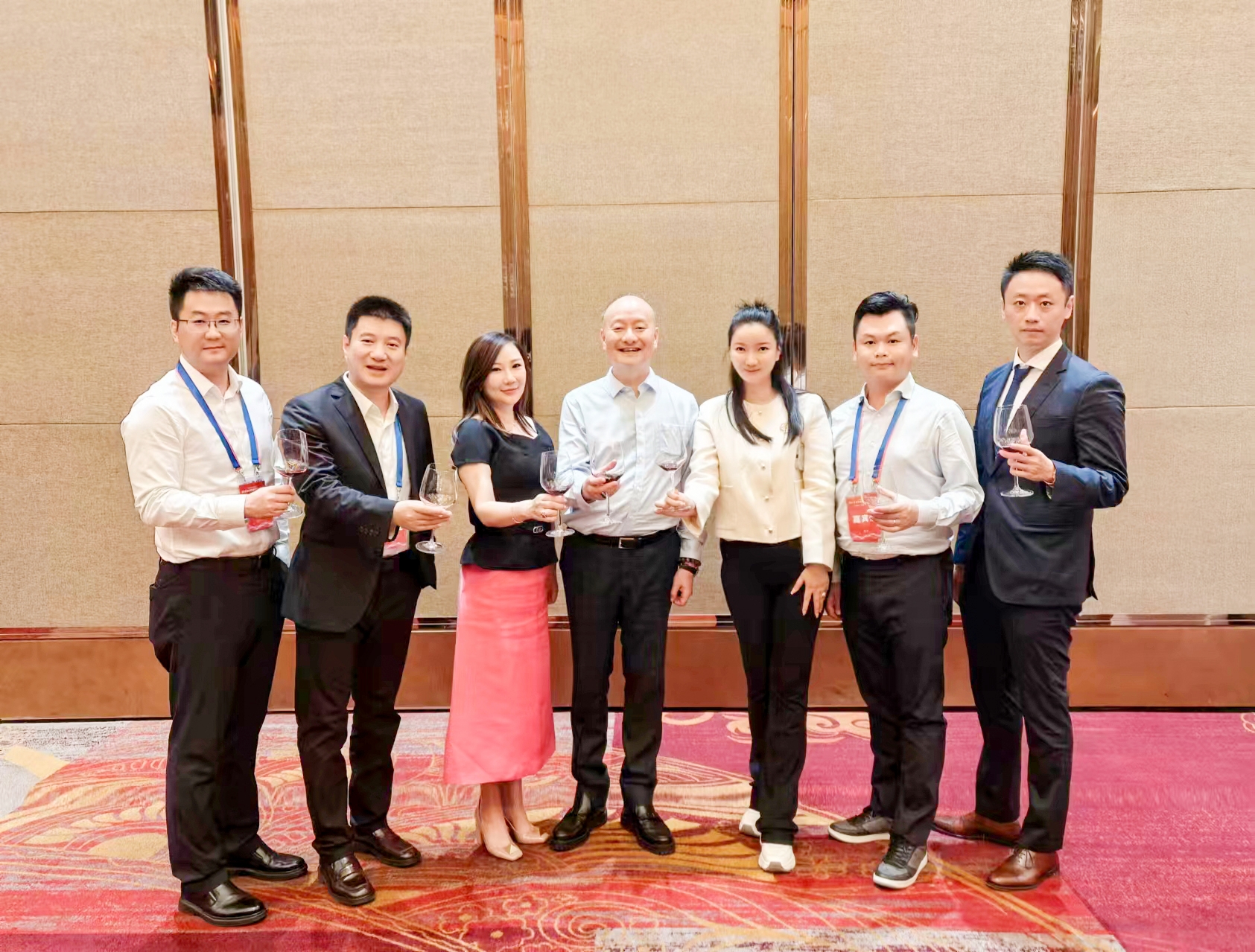 国际菁英会主席胡智荣(左四)与赵艺晴(右三)等代表友好交流