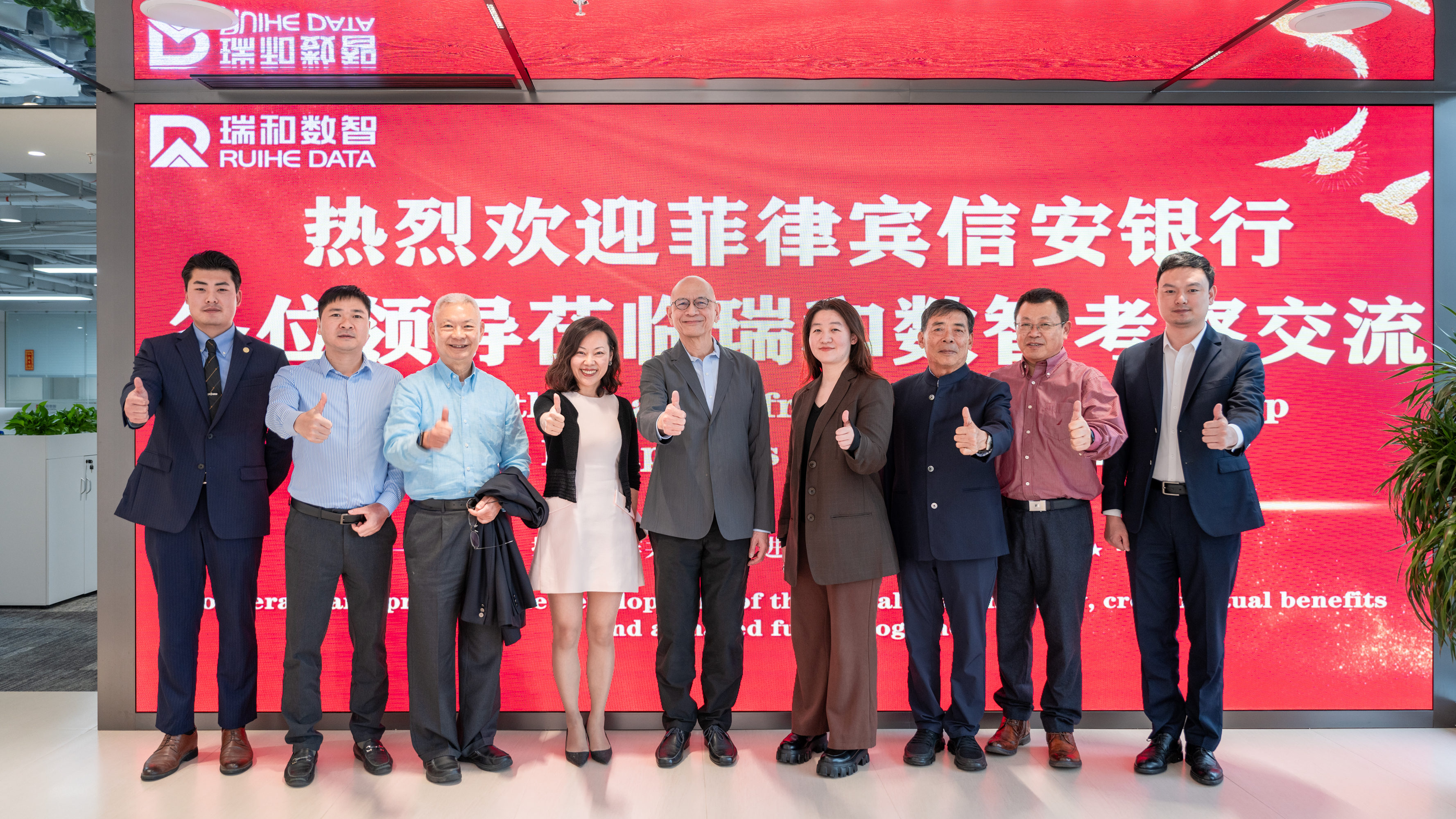 1月17日,菲律宾信安银行(Security Bank Corp)荣誉董事长李惠立、菲律宾信安银行董事洪荣光、博时基金原董事长周道志、光大证券原总经理周明毅一行莅临瑞和数智总部参访考察,瑞和数智(股票代码:03680.HK)集团副总裁、董事会秘书张凤伟、瑞和数智解决方案部总监杨林子陪同接待,双方就海外银行数字化业务合作进行了深入