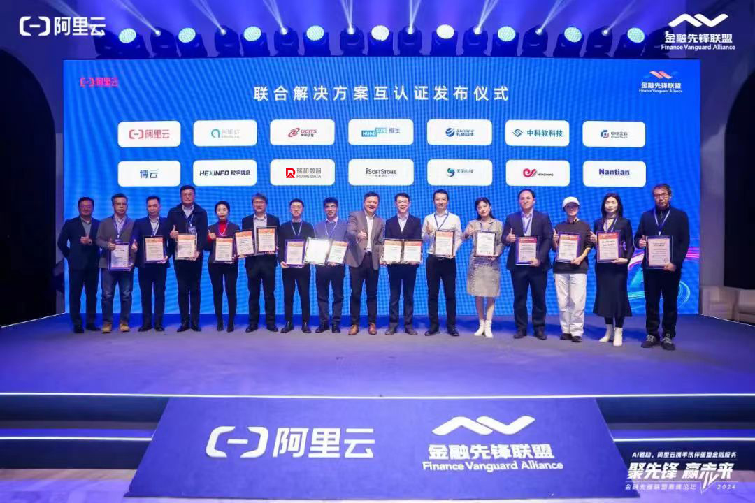 1月24日,由阿里云主办的2024金融先锋联盟高峰论坛在京举行,瑞和数智(股票代码:03680.HK)作为金融先锋联盟成员出席本次论坛,携手阿里云等13家业内翘楚共同发布17份联合解决方案,涵盖银证保领域核心系统云原生分布式改造,金融机构数据资产重构和AI应用场景探索。左四为瑞和数智金融科创事业部总经理/合伙人张鸿林其中